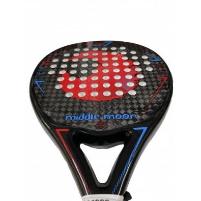 In seiner Konstruktion finden wir Materialien, die zu den Premium-Materialien in Padel-Schlägern gehören. Auf den Flächen kann man auf den ersten Blick das 12K-Karbon sehen, das Middle Moon in diesem Jahr in seiner High-End-Reihe verwendet hat. Dieses Premium-Material bietet ein hervorragendes Gefühl und einen großen Schlag. In den Rahmen finden wir einen doppelten Karbonrohr, in dem das 3K-Karbon erscheint, das den Schläger vor möglichen Stößen schützt und uns Festigkeit verleiht.