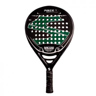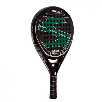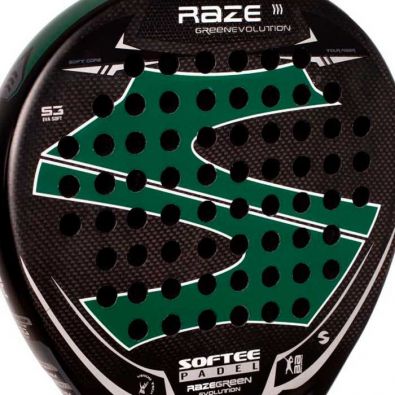 Der SOFTEE RAZE EVOLUTION GREEN CARBONO, eine verbesserte Version im Vergleich zu den vorherigen Saisons, enthält nun Kohlefaser in seiner Zusammensetzung. Ein Tränen- oder Hybridform Schläger für Kraft und Kontrolle. Er ist sehr handlich.
