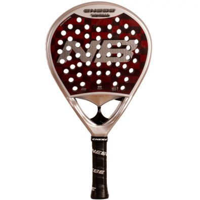 This is the top-of-the-line racket, with a new mold in a teardrop shape, but with flatter edges for a higher balance. This model is made entirely of carbon, with 18K carbon on the faces, which is stiffer and provides greater durability.