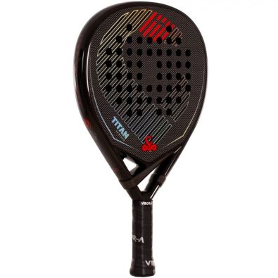 The Vibora Titan 3K Black 2026 offers a perfect balance between control and power. Thanks to its teardrop shape and medium balance, it is a racket that easily adapts to different moments of the match. Its sweet spot is very wide and leaves the sweet hitting zone unperforated for greater power.