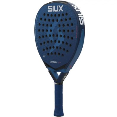 La SIUX DIABLO ELITE 2026 avec son design imposant et son format larme, nous offrira sur le terrain un jeu polyvalent, surtout dans les coups de transition. Fabriquée en fibre de carbone 3K, c'est un matériau rigide et complet pour augmenter la puissance. Ce matériau augmente la fermeté, ce qui convient mieux aux joueurs avancés pour qu'ils soient ceux qui dominent la balle.