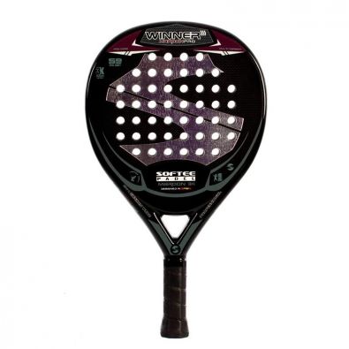 SOFTEE WINNER PRO MAROON - Modèle argenté avec des détails en violet de la série Winner. Avec sa forme de larme et sa composition en fibre de carbone, c'est une raquette de padel Softee très complète.