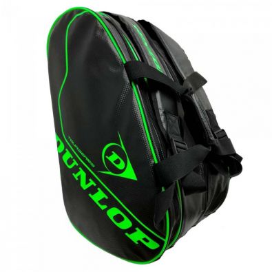 PORTA RACCHETTE DUNLOP TOUR INTRO CARBON PRO VERDE - Attraente borsa per racchette da padel per trasportare la racchetta da padel. In nero e verde con effetto carbonio sui lati.