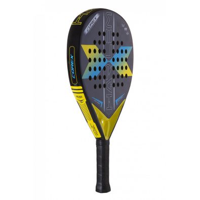 HARLEM COREX 18K - Se você é fã de raquetes de padel com design chamativo, com este modelo você não vai passar despercebido com sua combinação de azul, amarelo e preto. Raquete de formato híbrido para conseguir o melhor equilíbrio possível em todas as jogadas e fabricada com fibra de carbono 18K.