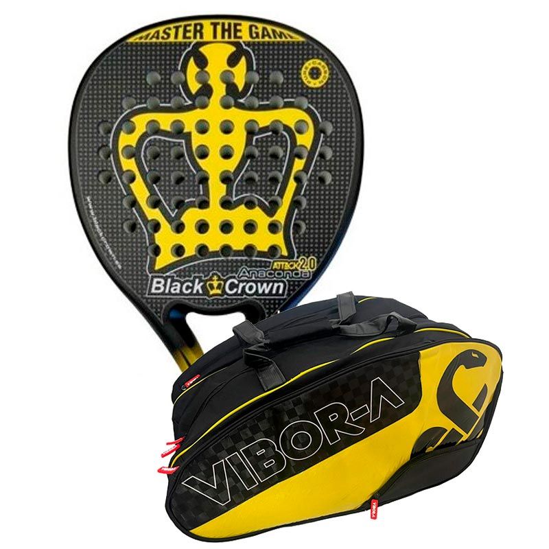 PACK BLACK CROWN ANACONDA ATTACK 2.0 + SACO VÍBORA BLACK MAMBA PRO YELLOW - Chega pelas mãos da Víbora e Black Crown uma combinação ideal para disputar uma partida e transportar seus bens mais preciosos. Com uma raquete de padel agressiva de alta qualidade a um preço muito acessível.