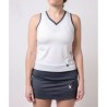 Este top é de cor branca, o que o torna muito combinável com todos os tipos de roupas esportivas.